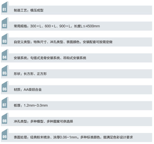 搭鋁單板天花板面平整,一般為單向平行龍骨勾搭式結(jié)構(gòu),板與板之間的拼接時(shí)通過(guò)龍骨有次序搭折在一起的,板邊獨(dú)特的勾搭設(shè)計(jì),能很好的控制板與板之間的活動(dòng)性,從而確保了板與板之間的縫隙風(fēng)嚴(yán)密平整拼縫細(xì)密,棱線分明,不同寬度可實(shí)現(xiàn)多種組合。
