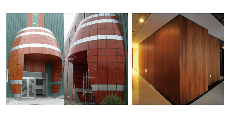 室外裝修。在室外,建筑幕墻、人行天橋、火車站幕墻、廣告標志牌等公共場所,我們的木紋鋁單板會經常被用到。因為具有很強的耐腐蝕性,能夠抵御強紫外線的照射,也能夠抵御酸雨這些強腐蝕性的物質。