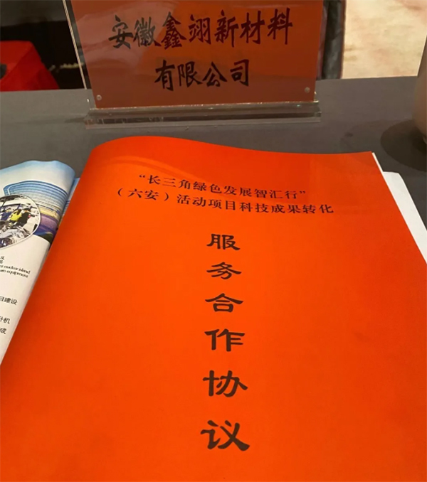 會上,為貫徹落實習近平總書記考察安徽重要講話精神,提升我市戰略性新興產業發展水平,推進長三角黨外知識分子專家科技成果轉化,加強交流合作,安徽鑫翊新材料有限公司與安徽建筑大學材料與化工學院研發團隊就新材料科研項目達成服務合作協議。