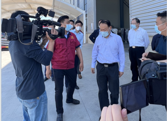 2022年5月5日上午,晴空萬里,微風習習。六安市委書記葉露中、六安副市長劉洪潔、金安區委書記霍紹斌一行蒞臨我司視察調研,指導防疫防控和復工復產工作。公司領導全程陪同調研。